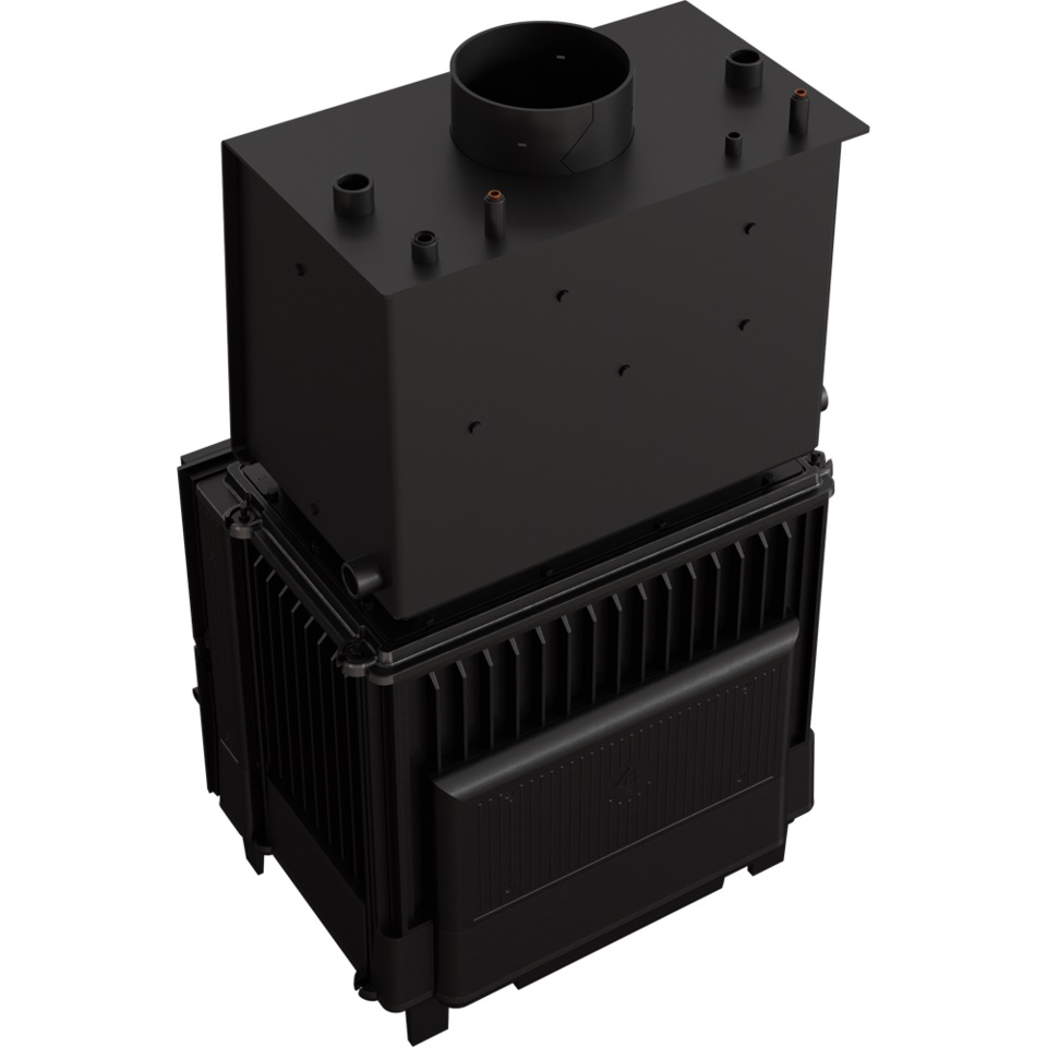 Zárt égésterű öntvény kandalló, víztérrel. A nagy öntvény felületnek köszönhetően nem kell lemondanunk a tűz látványáról, a víztér pedig besegít a fűtési rendszerünknek. Ideális választás azoknak akik egy meglévő hálózatra szeretnék a kandallót rákötni.