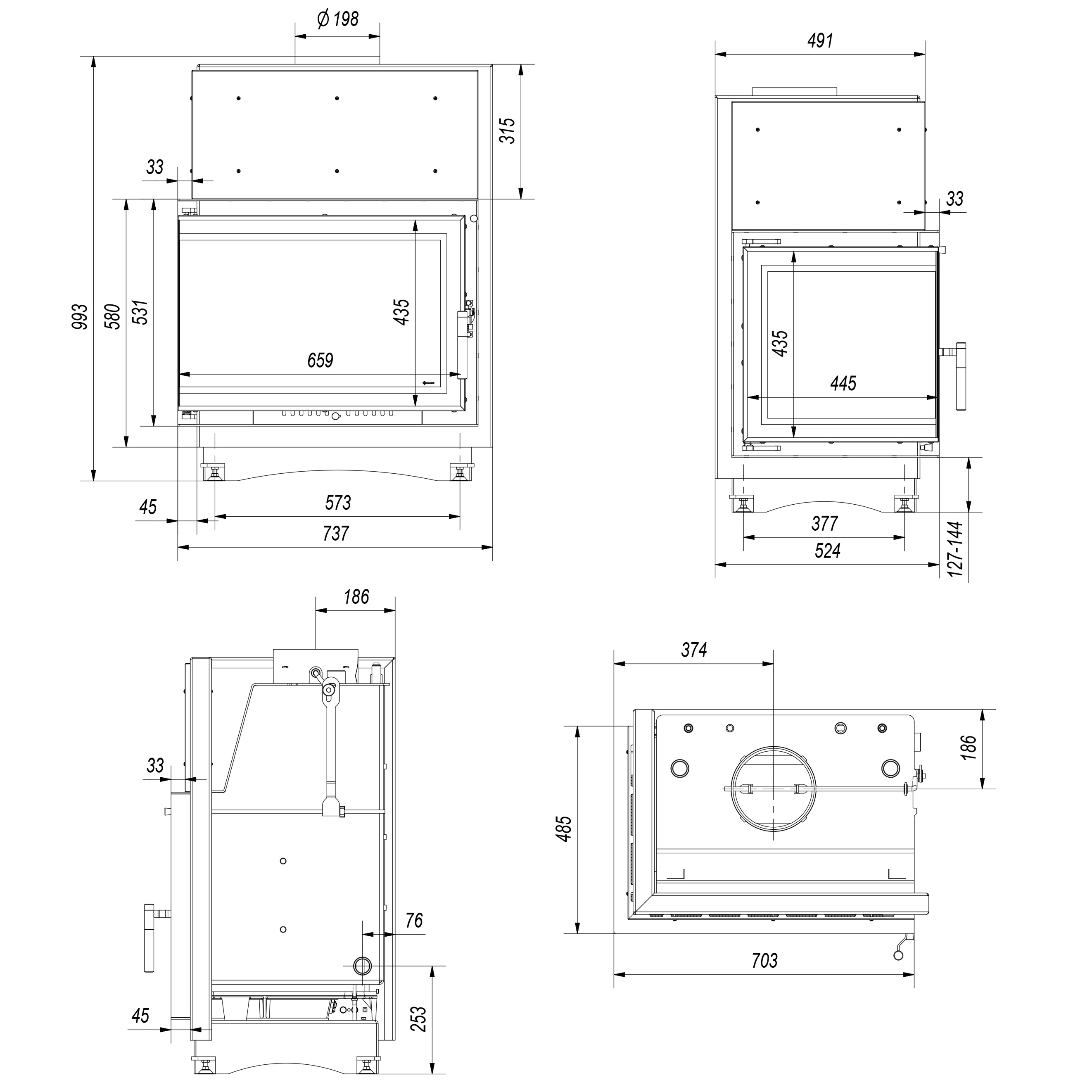 - A kivehető rostély és hamutál megkönnyíti a betét tisztán tartását.