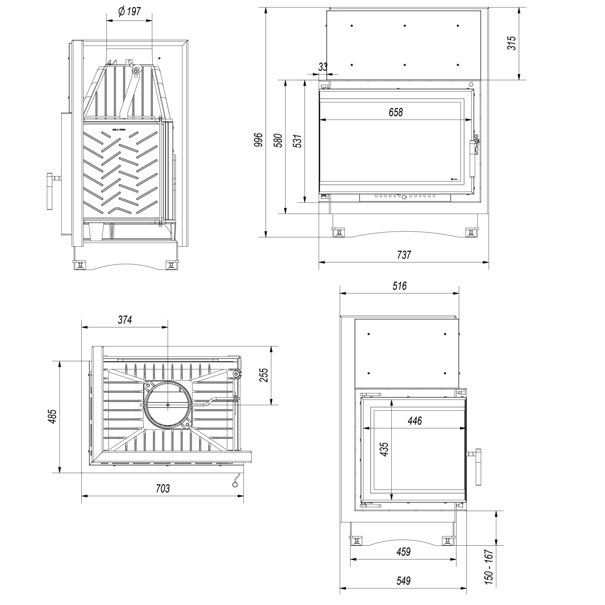 | Füstcső méret | 150/180/200 mm |